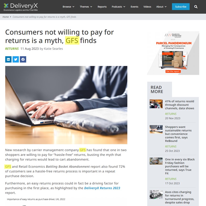 GFS revolutionises retail delivery by seamlessly integrating 1000+ carrier services through a cutting-edge technology platform. With a single relationship, invoice, and comprehensive Enterprise Carrier Management suite, GFS empowers retailers to efficiently deliver globally, offering a unique and cost-effective solution in the industry.