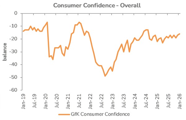 Overall, January’s consumer environment stabilised slightly compared to recent months, but remains far from buoyant.