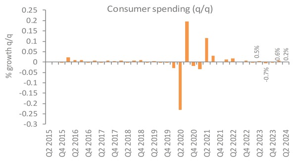 Consumer spending increased by 0.4% QoQ