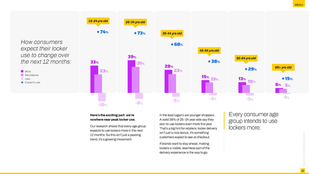 For retailers, this shift is a big deal. Understanding what’s driving locker adoption – and who’s leading the charge – can help fine-tune delivery and returns strategies, creating slicker experiences and stronger ROI.