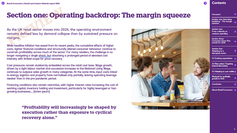 This preview introduces the UK retail and leisure outlook 2026, an upcoming flagship report from Retail Economics examining the forces set to shape the sector in the year ahead. It outlines the key themes, pressures and strategic questions that retailers and leisure operators will need to navigate as economic conditions, consumer behaviour and operating models continue to evolve.