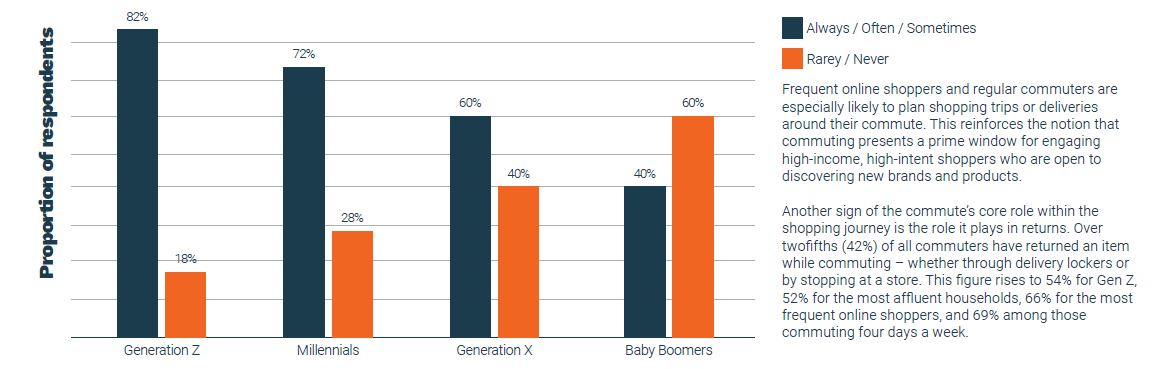 Drawing on exclusive research from a nationally representative survey of 2,000 UK rail commuters, the analysis shows how their behaviour is structured, repeatable and commercially rich. Commuters are not only planning their journeys, they are also planning purchases, deliveries and returns around the days they travel.
